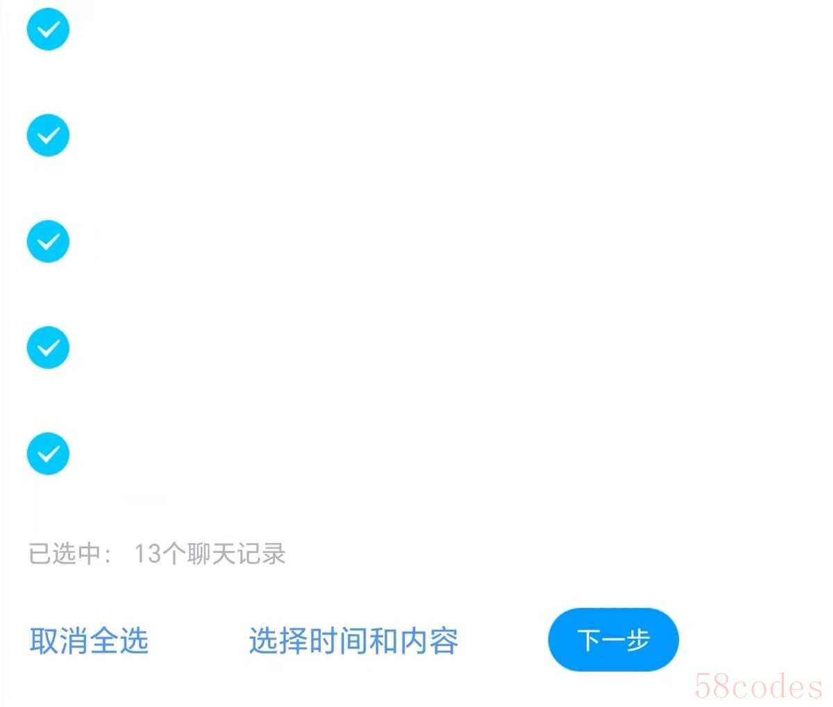 7.在这里,可以根据自己的需要,选择一部分或全选所有的聊天记录;