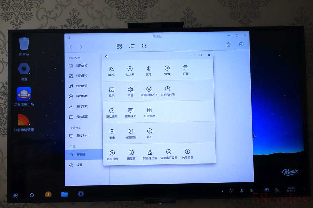 进入界面之后,真的是好像PC啊,无论是界面还是操作,有一种使用普通WINDOWS电脑的感觉,里面有回收站,设置,像不像刚进WIN7系统的感觉?