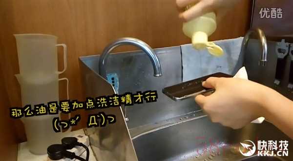 一位香港的萌妹子近日进行了一项重口味测试,将Galaxy S7在番茄酱、吃剩下的关东煮混合汤汁中“沐浴”,再用清水冲洗干净,洗的时候还用了洗洁精。