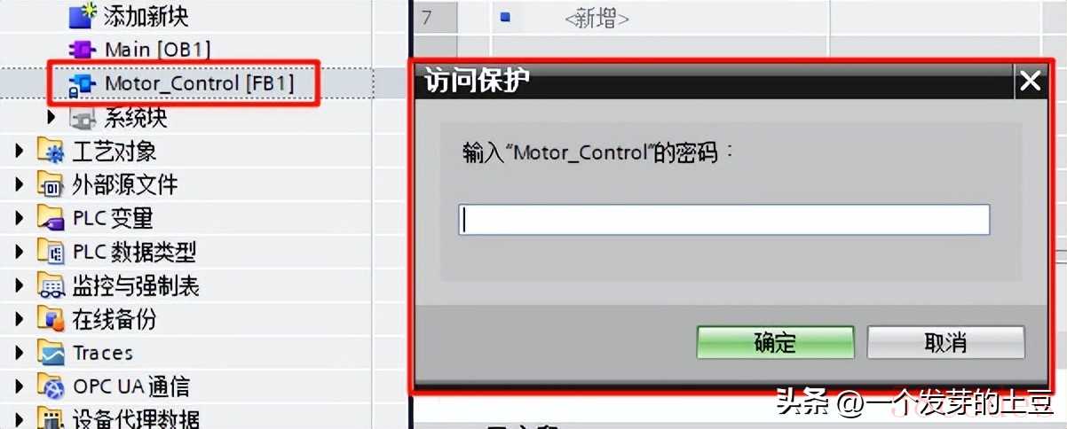 密码生效以后,可以在项目树窗口中看到被保护的块左下角有小锁标志,当打开被保护的块时,弹出窗口提示需要该块的密码,输入正确密码,点击确定后可以看到该块完整内容;如果点击取消按钮,则只能看到块的接口,无法看到程序块内容。(如果是 DB 块,可以看到内容,但无法编辑)。