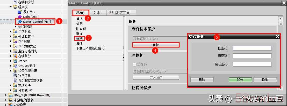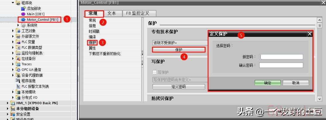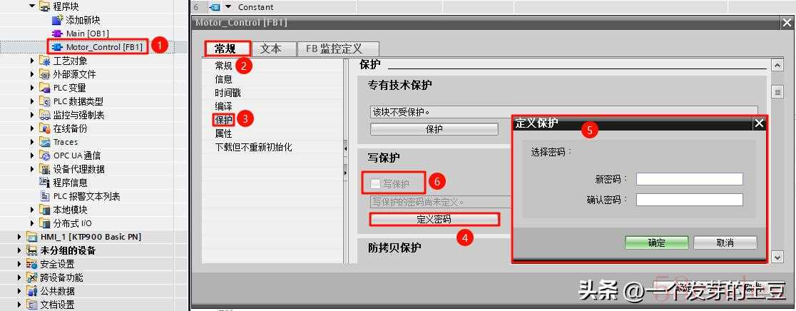 程序块的专有技术保护主要是对项目中的程序块(OB、FB、FC、DB)进行访问保护,如果没有专有技术保护密码则无法看到程序块中的具体内容,对于专有技术保护的 DB 块,如果没有密码只能读不能写。