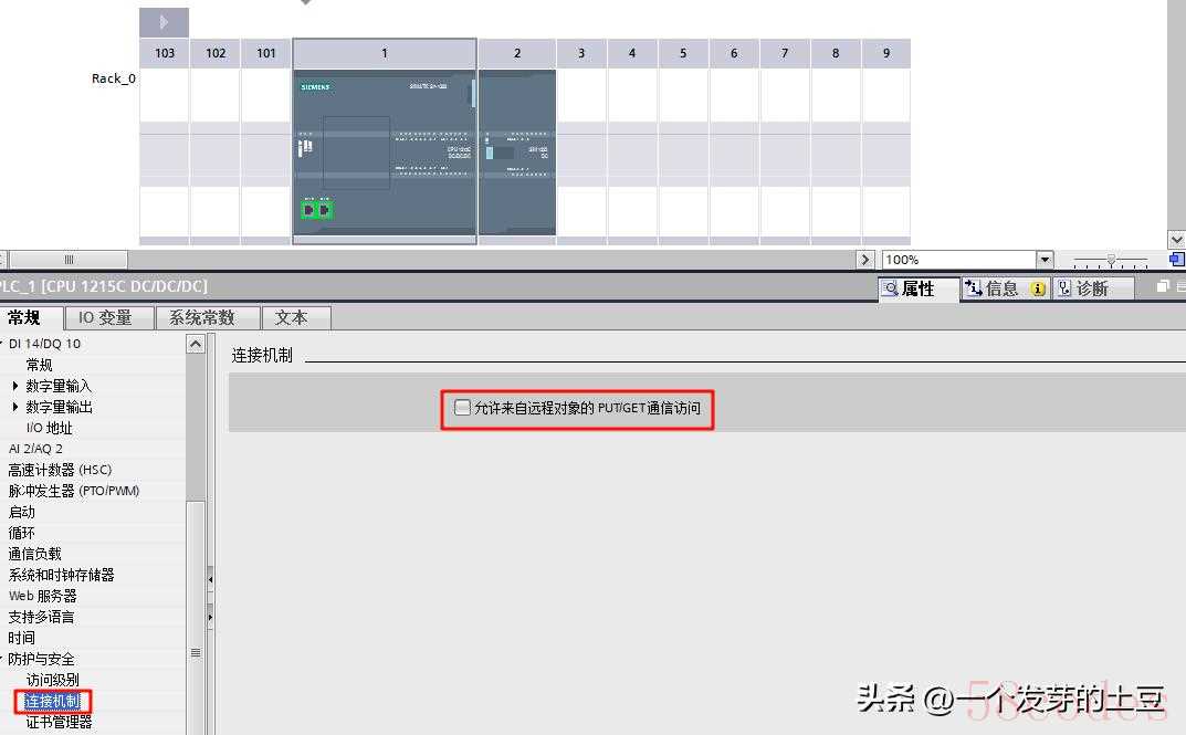 注:如果"连接机制"中无法激活"允许来自远程对象的 PUT/GET 通信访问",显示为灰色,通常是因为CPU的保护等级设置为最高"不能访问(完全保护)",只有设置成其他保护等级,才能激活该选项。