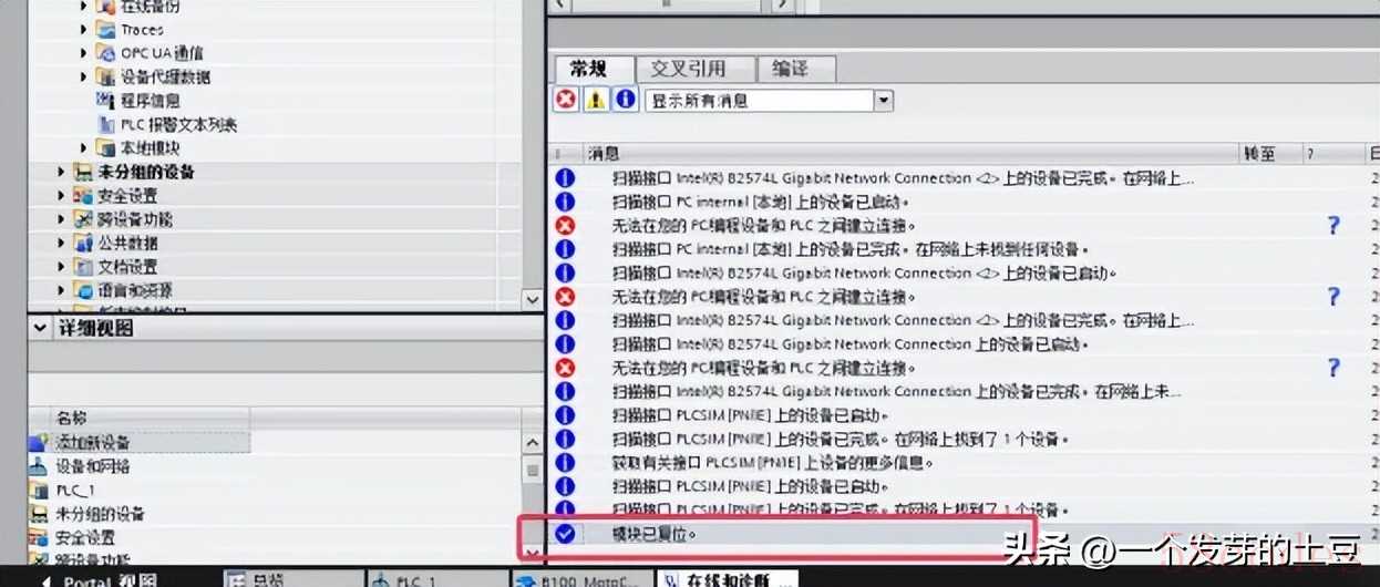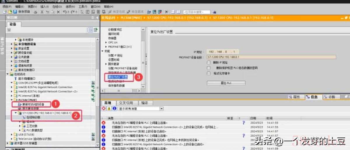 在某些情况下,项目已编译通过,但在CPU下载时报错导致无法下载,需要把CPU重置为出厂设置,步骤如下: