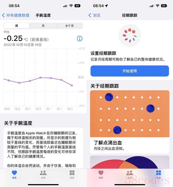 不同的是,女性用户在排卵日之后,会分泌孕激素,体温也会随激素增加而上升,上升幅度大概为 0.3-0.5℃,体温上升期会持续十几天时间,Apple Watch 据此估算佩戴者的排卵日期,帮助用户做好备孕打算。