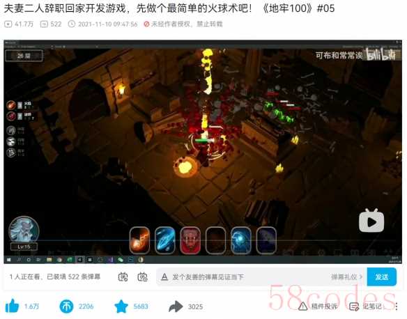 从另一方面讲,玩家也能从这些制作日常里,认知到零星的制作游戏的过程。像是在126万播放量的视频“夫妻二人辞职回家25个月,终于开发出BUG了!”里,两人将《地牢100》第一次测试的大致情况和玩家粉丝们做出了分享。
