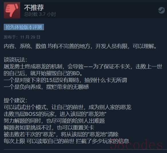 所以这使得整个游戏各种流派构筑的体验十分良好,就拿steam评论区的一句话来说,“你有无数个理由退款,但是狂玩100小时只有一个理由,有趣且自由的BD构建。”