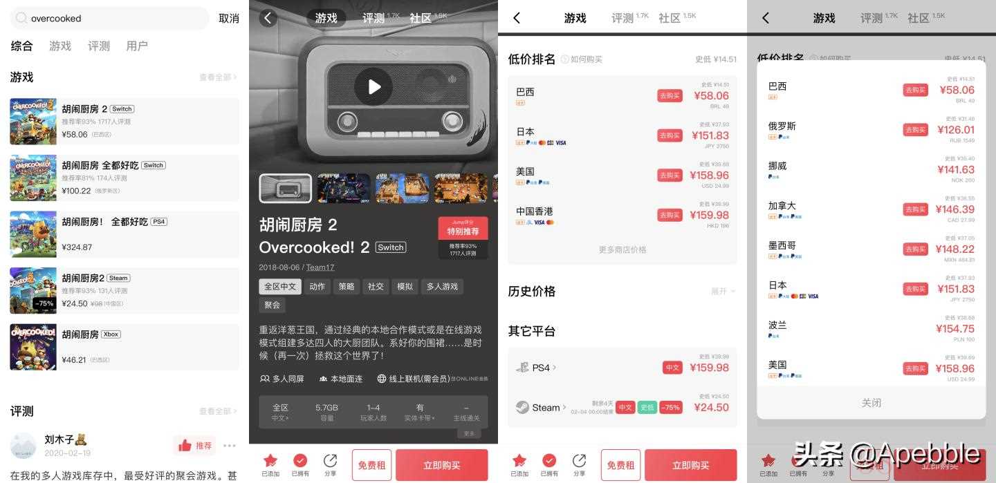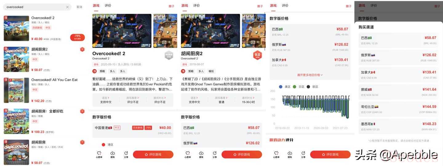 比较早期的游戏价格记录工具,产品形态从之前的小程序扩充到了现在的APP,已经发展成了一个主机游戏的综合型产品,产品矩阵包含APP、小程序、公众号等。平台除了switch外还有Xbox、PS和Steam的游戏信息。在APP里可以了解游戏介绍、攻略、评价、玩家分享、游戏咨询和商城等各种游戏相关的信息。这里我们主要使用它的历史价格说明功能。