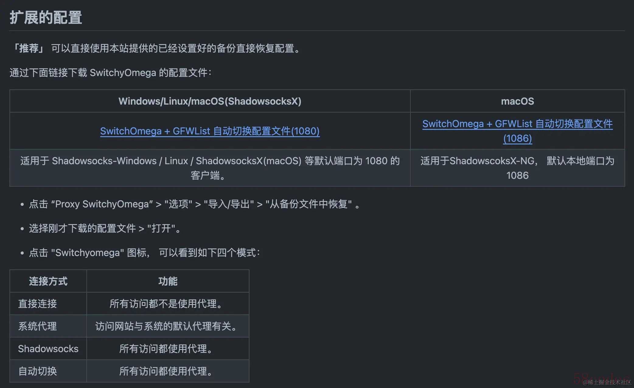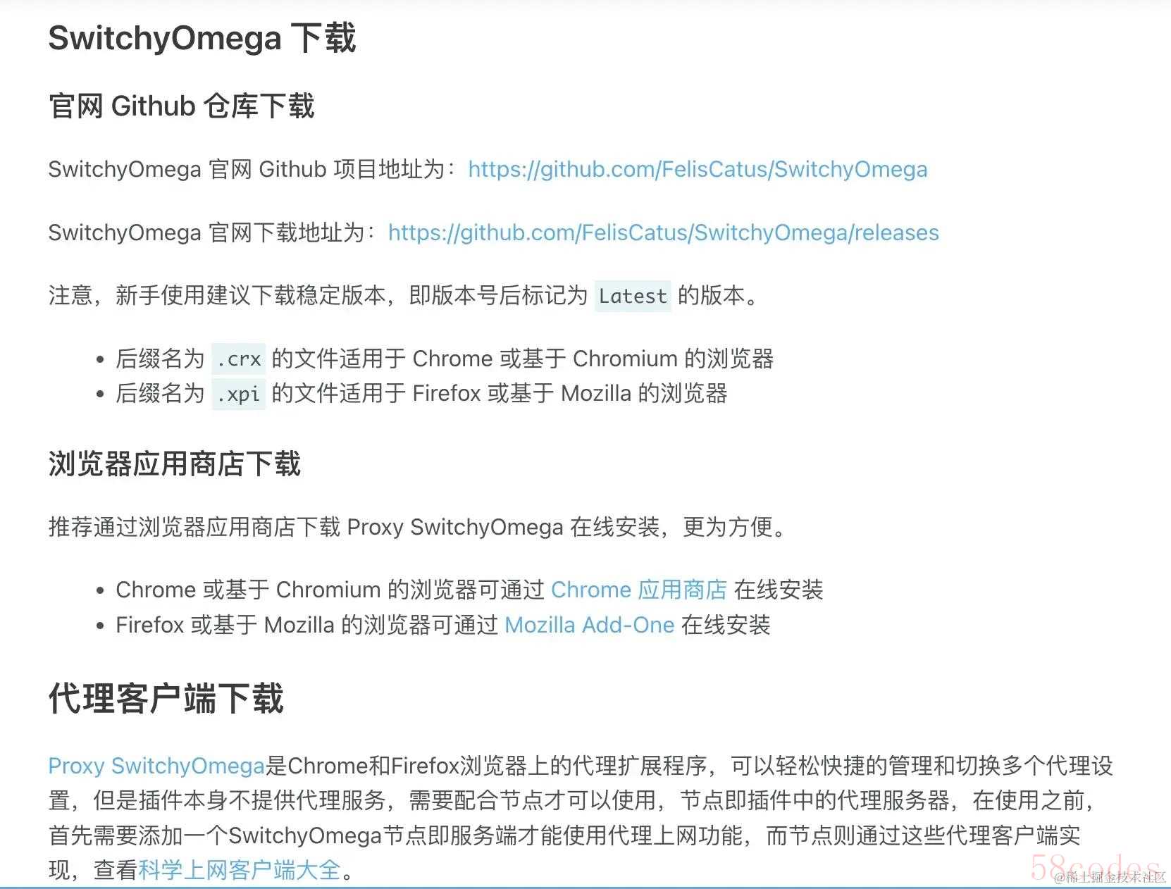 打开链接,找到下面这个部分,进行SwitchyOmega配置。