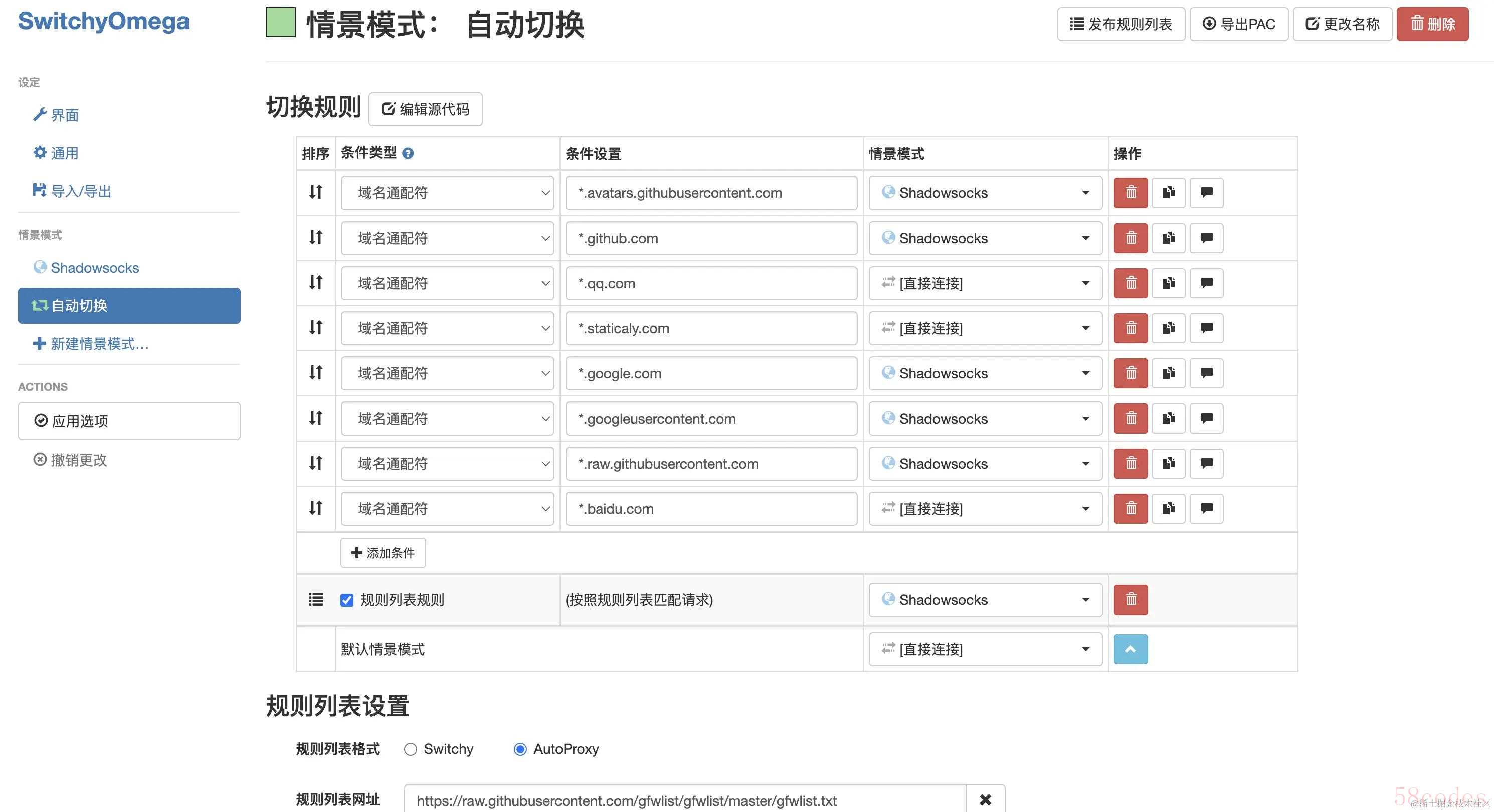 确认之后,规则就添加到SwitchyOmega配置中了。