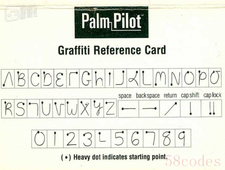 此外,Palm OS预装的手写输入法Graffiti(直译成中文是“涂鸦”)是从霍金斯的PalmPrint输入法改进而来。其实早在Palm OS问世之前,Graffiti输入法就已经被得到应用了,除了基于GEOS的惠普OmniGo 100外,这个输入法甚至还被移植到了苹果的Newton掌上电脑,并大受好评,之后就成为了Palm设备的标配。当然,Graffiti输入法是需要用户经过事先学习才能得以顺利使用,这与该输入法的开发方向有着很大关系。