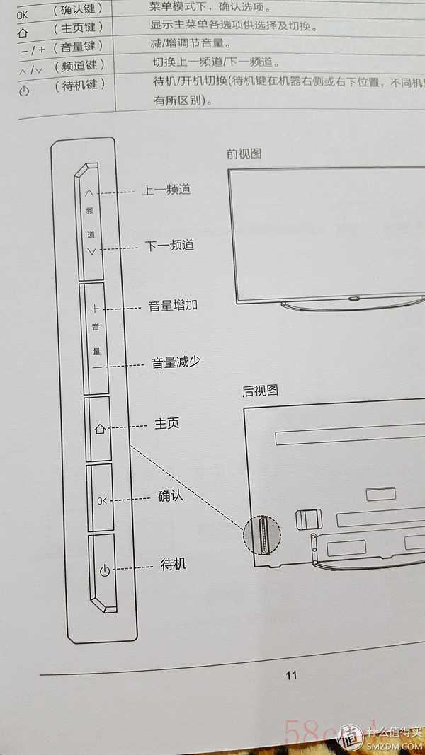 电视机的背部按键说明:频道切换键、音量大小键、主页键、确认键、待机键(实测也可以关机),背后的按键手感不错。酷开42K1TY只有遥控器的待机键,电视机上居然没有开关机键,是的你没有看错