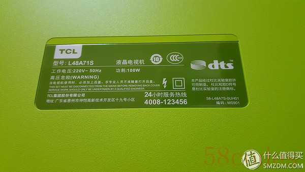 型号是L48A71S,支持杜比和双D符号,机芯是MS901,支持3D无闪式,就是功耗100W有点吓人