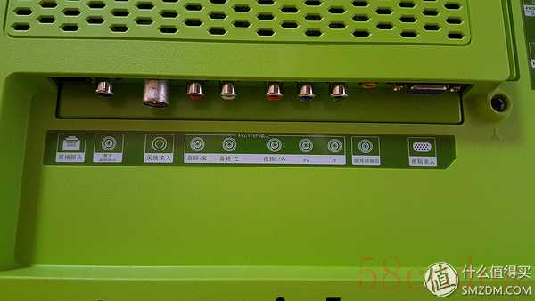 底部的接口:LAN网络输入×1,数字音频输出×1,天线输入×1,AV2输入×1,色差输入×1,音视频输出×1,VGA(电脑输入)×1