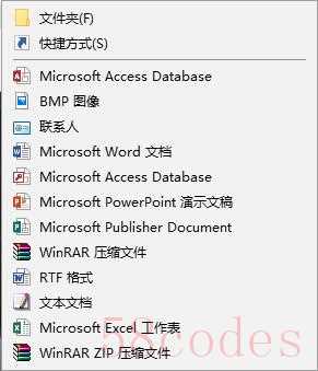 此外,如果大家安装了较多的应用程序,会在鼠标右键“新建”选项中出现一堆可以新建的项目。其实我们日常用的也就那么几个:新建文本文档、新建文件夹、Office三大件一类的文件,至于"新建WinRAR"恐怕没几个人会用吧?