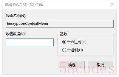 在右侧新建名为“EncryptionContextMenu”的32位DWORD值,并将默认数值数据设置为1。