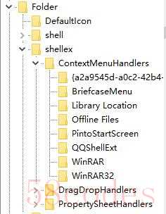 如果这里没有大家想要删除的右键选项,在HKEY_CLASSES_ROOTFoldershellexContextMenuHandlers还有一些隐藏着呢,删除哪个看个人需求了哦!