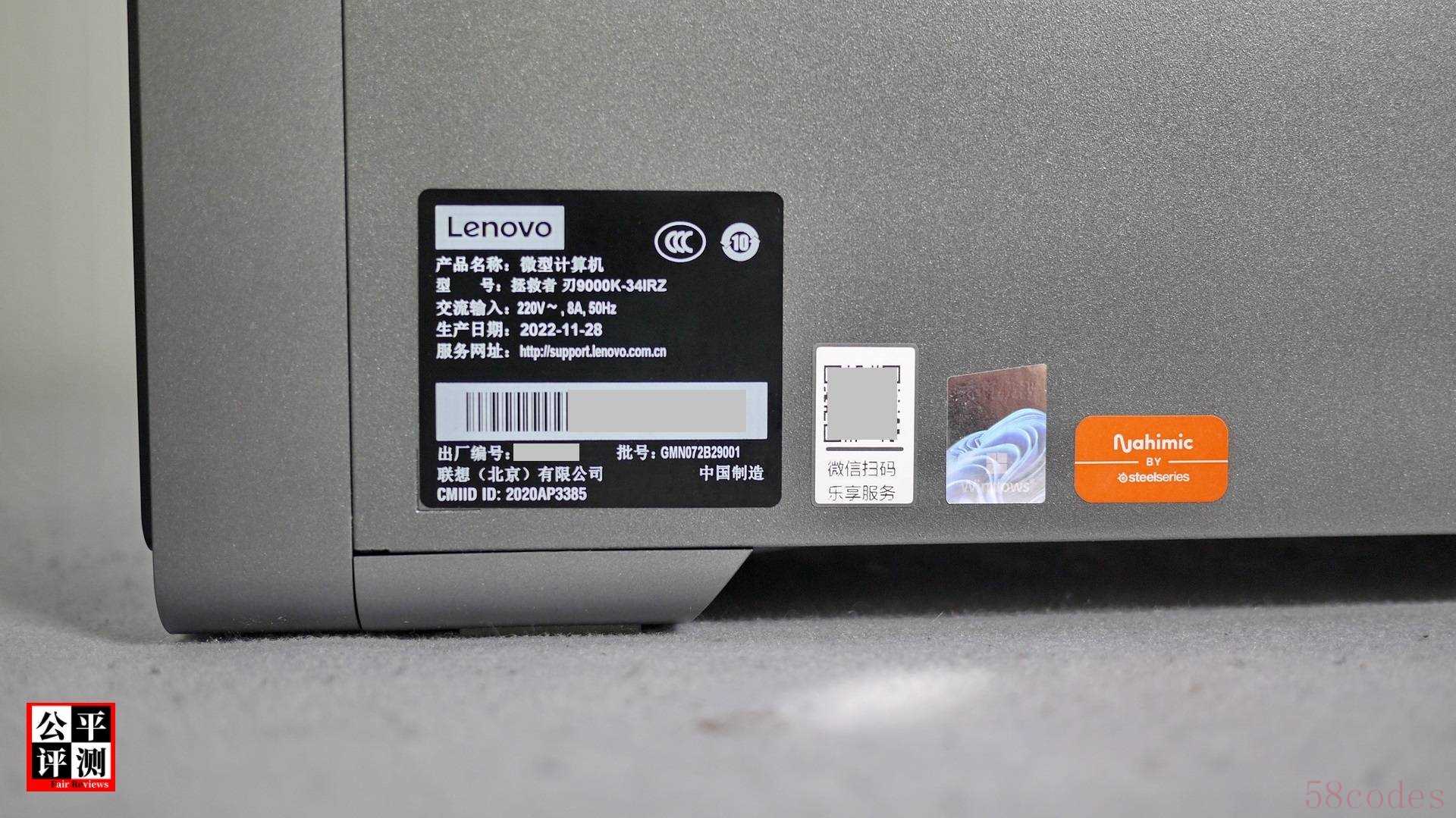 品牌台式机往往都会有标注,如下图所示,是台式机联想拯救者刃9000K 2023的机身标签: