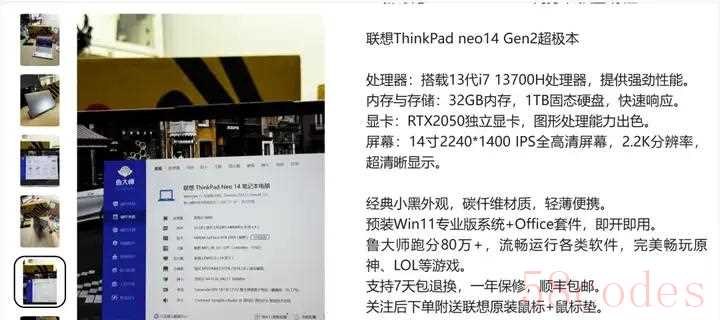 另外Neo14只出了一代产品,下一代就改名为T14P Gen1,划分到了T系列,不存在Neo14 二代,闲鱼上的i7-13代+2050配置的Neo14二代是工程机,最后上市的T14P Gen1也是13代酷睿+3050,不是2050。