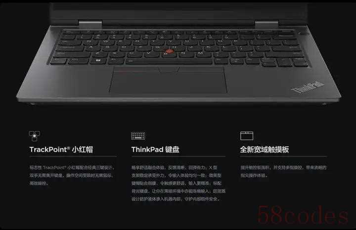 C面是工程塑料+类肤涂层材质,触感依然ThinkPad。键盘是经典的TP 6行半全尺寸防泼溅键盘,带两档白色背光,搭配迷人的小红点和本世代统一的1.5mm键程,永远是轻薄笔记本中的手感之王!