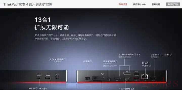 - 官方扩展坞:ThinkPad Universal Dock(40B0),通过雷电4 接口提供: