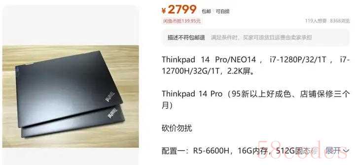 二手 ThinkPad Neo 14,特别是搭载酷睿处理器的版本,通常具备以下优势: