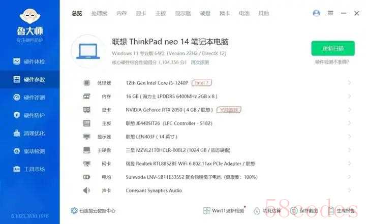从性能释放上来看,Neo14的酷睿版或者锐龙版,应该都是同型号处理器里,性能释放的T0梯队,性能释放的高度和持久度都让我倍感意外,比thinkbook 14+ 2022款都强不少,传统Tp设计性能释放时候都是偏保守静音的一个程度,Neo14一下子这么强我还挺不适应,