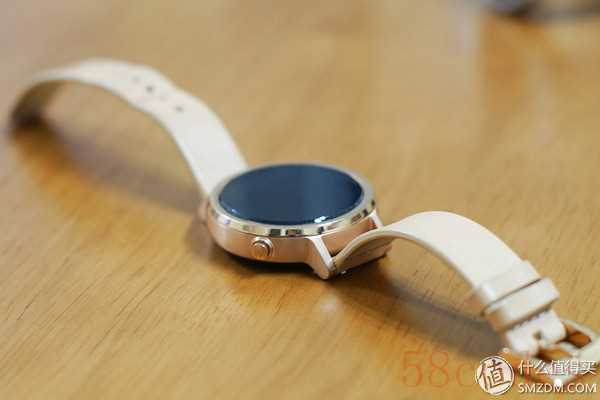 自带的皮表带,颜色和质感还不错,对比MOTO360来说,感觉要好得多。MOTO360的表带不知道是因为女款比较细还是怎么,首先看起来不像真皮,其次用了一个多月简直就已经废掉了。