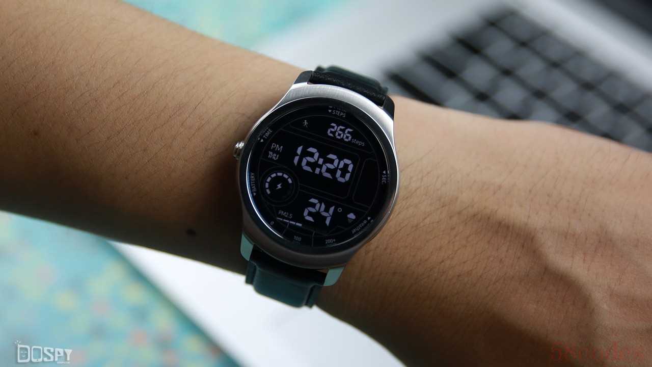 ticwatch2的表体部分采用316L精钢细拉丝材质设计,金属感十足,同时也让其尽显时尚。可以看到表冠被设置在左侧位置,长按可以进入设置进行关机重启等操作。