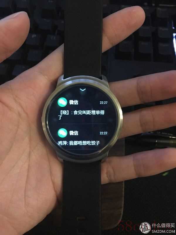 第一,微信推送。ticwatch推送的微信内容,就跟你手机上的推送是一样的。回复什么的就不用想了。包括看不到表情,看不到较长对话的后面部分,反正手机上怎么显示,手表就怎么显示。这个也是对于我来说最有用的功能,平时微信太多了,有的重要,有的不怎么重要,平时手机在裤兜里震动一下拿出来看一眼,好麻烦,但是在手表上就不一样了,虽然还是不能回复,但是有什么信息可以先扫一眼手表,浏览一下,重要的再拿出手机回复什么的,一天下来,你发现轻松很多,手机的续航也长一点了。