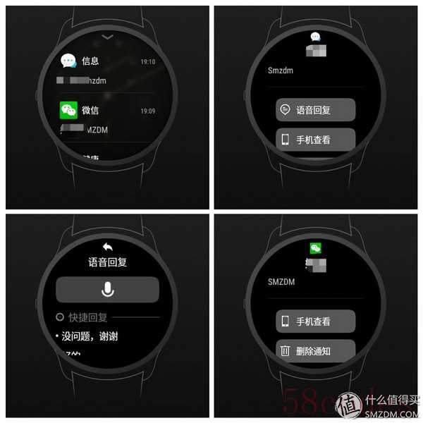 连接安卓手机时可以直接语音或者使用快捷信息回复短信,iPhone则不行。手表推送一定程度上节约了时间,提高了工作效率。