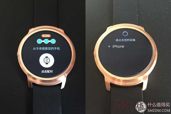 ▼由于我是苹果系统用户,所以这里选择iOS,接下来进入配对环节,在手表屏幕上从左向右滑动可以看到配对方法介绍,如下: