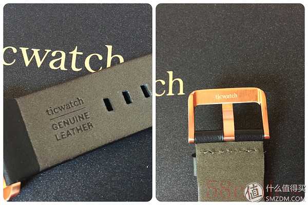 ticwatch缎金(黑曜金)采用玫瑰金色精锻不锈钢机身搭配意大利小牛皮表带,我感觉这个金色比以前那个银色要更上档次不少。