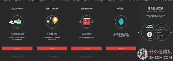 ▼在手机上打开ticwear助手之后,需要进行各种授权,最后打开手机蓝牙: