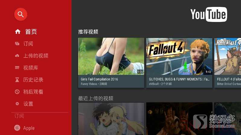 Android TV界面为扁平化+水平扩展动态磁贴设计,精简了大量不必要的选项和交互。更易于上手,但国内的图形设计习惯更讲究对称一些,而Android TV即使在系统的各类设置下往往需要一直向右拉到尾端,如应用列表、视频动态等。最顶部的磁贴为Google Play的各类影视音乐资源的推广链接,自然都是付费观看的项目,用户也可以在系统设置中手动关闭。