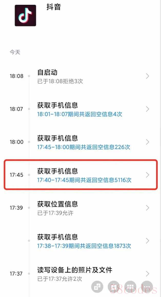 刷了5分钟抖音后,小米“空白通行证”共向抖音返回5116次空信息。