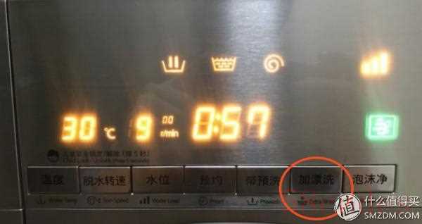 也没有配备文字显示屏。仅能显示剩余时间,附加功能也仅能调节水温,甩干转速,加速洗衣,增加水量,预先清洗,浸泡,还有cap洗涤剂。(不带有洗涤剂自动添加)不过好在也都是触摸的。