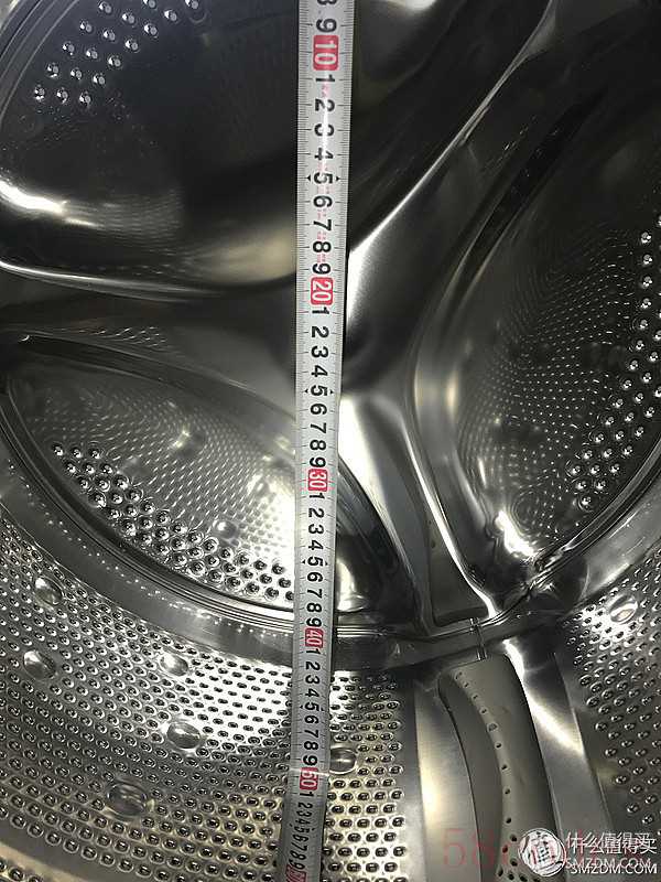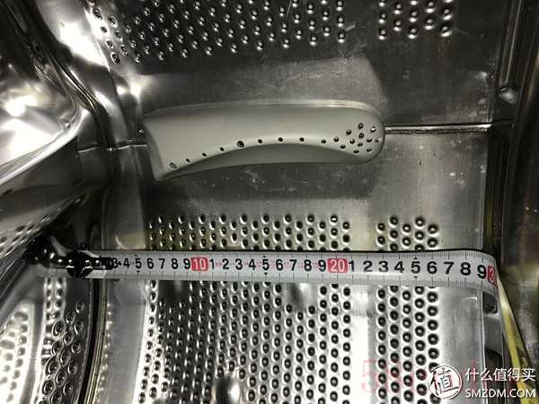 然后测量深度,注意要贴着底部,不要算前部端盖,那里不能洗衣服。