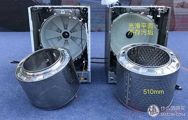 大容量的升级是配合大内筒500mm+,(这个是内筒直径不是机门)在原有体积不增加的情况下增加了洗涤容量,满足现状日益增加床品,窗帘洗涤需求,更大的容量在洗涤半载衣物时也会提高洗净效果,大落差更大空间摔打,还能增加漂洗和脱水性能。大直径内筒也对工艺提出了更高的要求,各个厂家也都使用了新的制造平台,基本也都解决了后桶凹槽的问题,也增加了轴承支撑力。