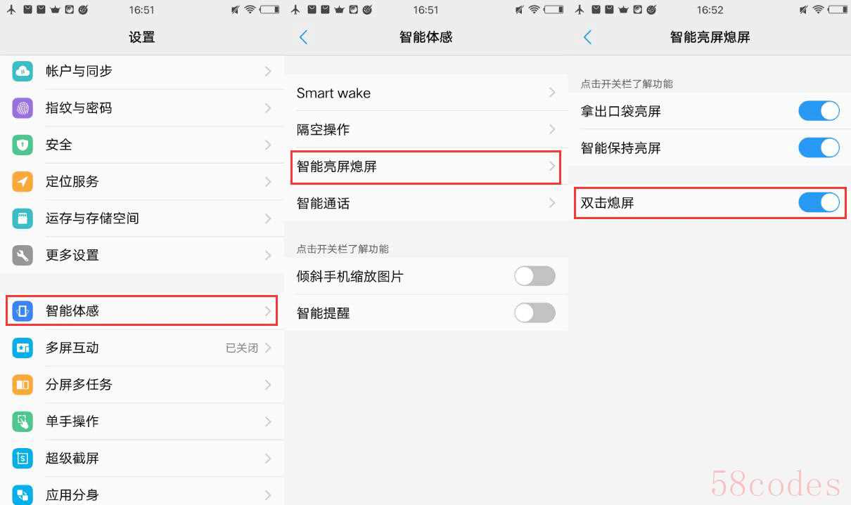 操作:【设置】→【智能体感】→【智能亮屏息屏】→【双击息屏】