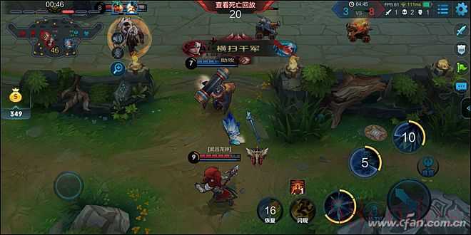 在游戏优化模式下玩王者荣耀,vivo X20可以一直稳定在58fps到61fps上,游戏运行的感觉异常流畅。