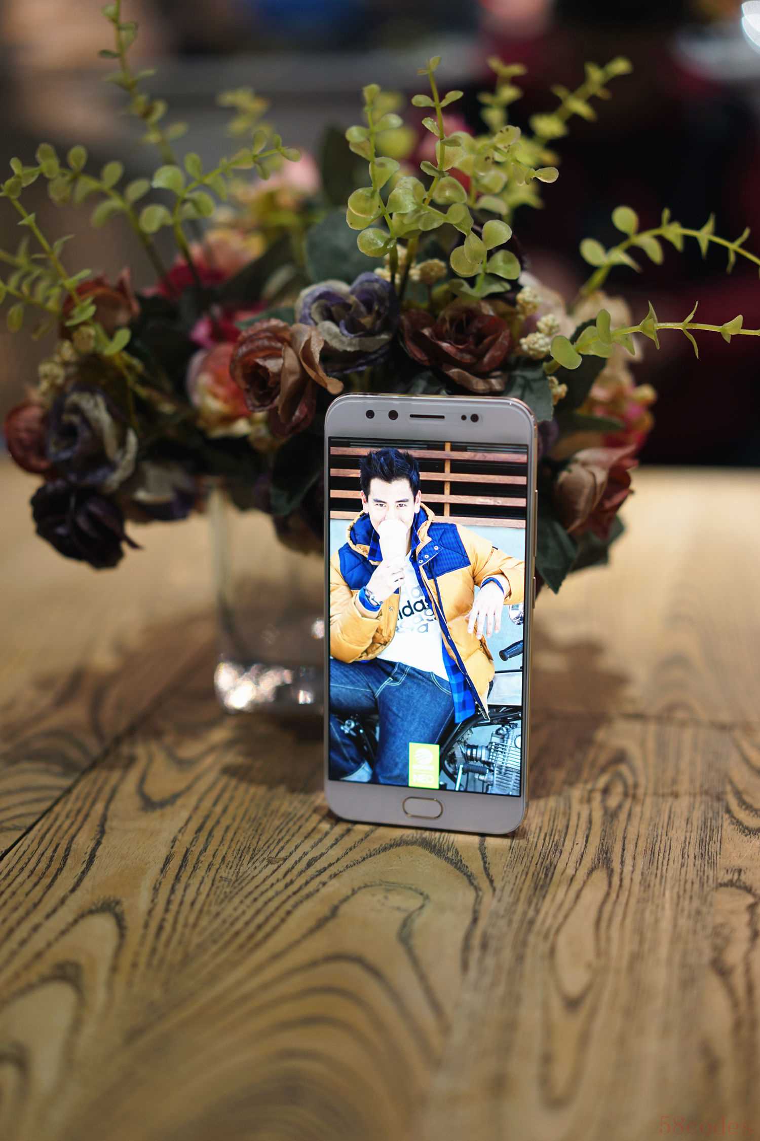 其实这次vivo X9 最大的两个亮点就是前置双摄像头和柔光自拍,我们先说说前置双摄像头。我们先需要在自拍模式中打开双摄虚化,前置2000万的主摄像头和800万的景深的副摄像头会同时工作,从而实现自拍都能实现背景虚化的效果。我们拍下照片后可以对照片进行焦点的选择以及光圈的大小,来实预览自拍虚化的效果,再决定将我们的照片输出,效果自己可以掌握。这样就可以实现先拍照后对焦了,玩起来也更有意思,可以随便选择清晰的点,然后虚化其前景或者是后景,这样突出主体,而且层次分明。而且你会发现主体之外的背景的部分细腻柔和,过滤掉了比较杂乱的背景,像单反相机的效果一样,这是一般手机难以媲美的自拍体验。相信这样天生的优势,vivo X9 的双摄虚化功能会受到不少用户欢迎,特别是女性用户。