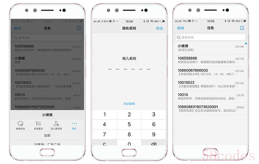 而且手机在日常生活会被借给朋友,但是一些私密的信息还是不想被看见。这个时候怎么办呢?同样是长按想要加密的短信,点击加密,属于隐私密码,这样信息的内容就会被隐藏起来,如果想要查看,必须输入隐私密码。这样情况下,再也不用担心自己的短信会被别人看见了。
