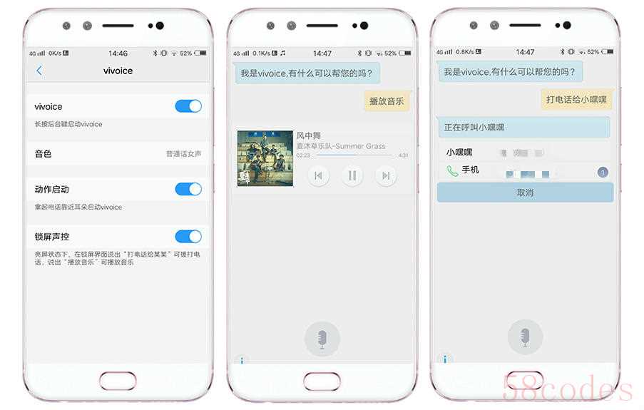 借助于vivoice就可以准备打电话的时候,拿起电话靠近耳朵,说出“打电话给某某”,这个时候手机就会自动打电话给“某某”,十分贴心。而且亮屏状态下,想听音乐,说出“播放音乐”,就可以播放音乐,简直不要太酸爽。