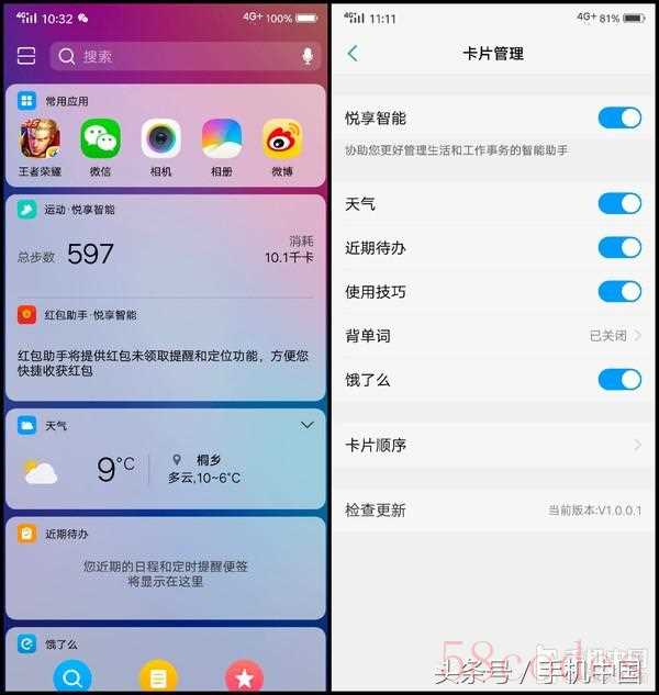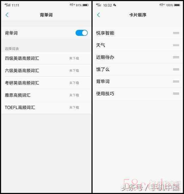 除此之外,桌面状态下新增的负一屏非常抢眼。作为该机的智慧桌面,它提供了多种功能与服务的入口,比如我一看就头疼的背单词...所有卡片页均可以调整先后顺序或关闭,用户可依照自己的需求开启。