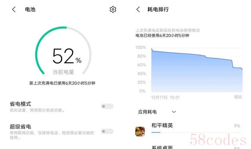 除了游戏之外,轻度使用情况下vivo Y55s的续航能力更为突出,如上图测试所示,在用点时间已经显示6天20小时的情况下,我们看到vivo Y55s的电量还有52%,也就是说轻度使用,只是亮屏使用状态不玩游戏等的情况下vivo Y55s可以支撑七八天的续航,确实是了不起,这种大电池手机怪不得大家喜欢。