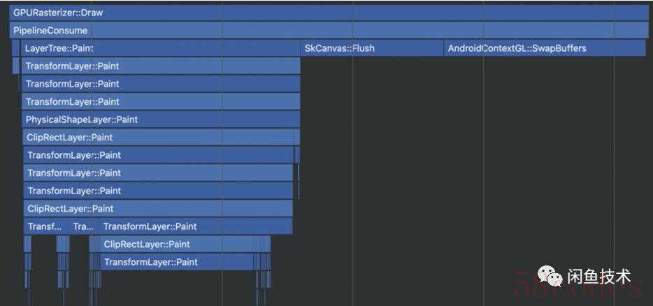 理解原理后,我们对闲鱼图片控件新增参数,支持图片内容圆角设置和图片内容宽高裁剪,使 native 层生成的 Bitmap 已经满足圆角和宽高比要求。同时修复 radius 为0也会设置 ClipRRect 的问题。优化后的 Timeline 图如下: