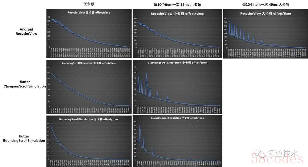 由上可以得到,同样在 FPS 值达到 57,Android RecyclerView 在用户体感上比 flutter 列表控件更好的原因:在小卡顿时,offset 偏移值并没有发生翻倍跳变。