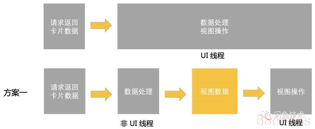 RecyclerView.onBindViewHolder),在低端机上耗时较为严重,原因是在卡片数据绑定方法中,而 UI 和非 UI 操作糅合在一起,由于 UI 逻辑必须在 UI 线程执行,最终导致全部逻辑只能在 UI 线程执行。