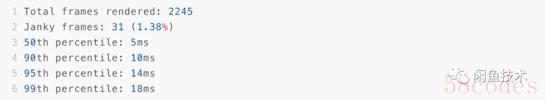 帧耗时数据 使用 adb 命令得到几个关键分位的帧平均耗时:
