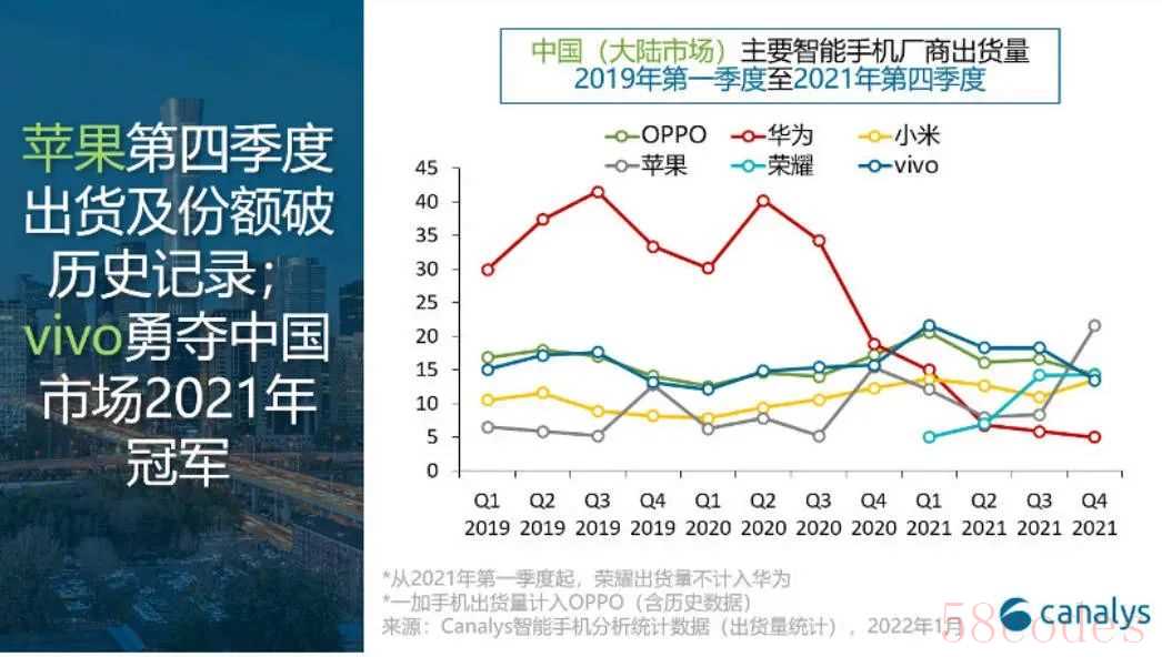 这个结果反映了vivo在整个年度的稳定表现,同时也体现了苹果在iPhone 13系列发布后的强劲势头。